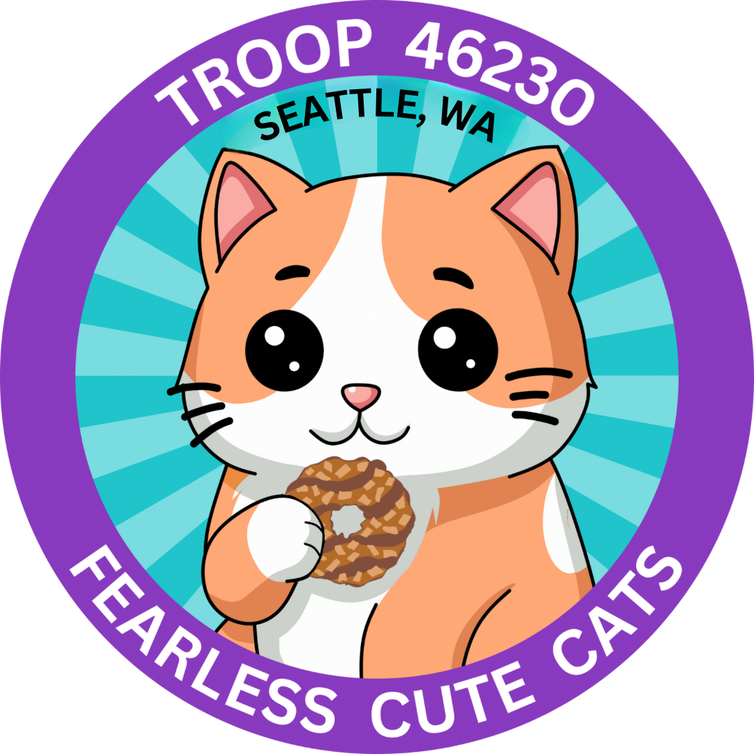 We are a “Super Troop” serving all elementary aged kiddos from Kindergarten through 5th grade. We operate in 3 units: Daisies, Brownies (Fearless Cute Cats (“Cats”)), and Juniors (Adorable Radioactive Gummy Bears (“Bears”)). This is by far the simplest way for us to organize all the kiddos and adults. We are based at Olympic Hills Elementary School, but include kids from surrounding schools and neighborhoods in North Seattle, Shoreline, and Kenmore. We have a bunch of involved parents and we do fun things like Meetings, BBQs, outings and special events, community service projects, hikes, camping, etc. The kids are empowered to make decisions about what is important to them and make choices about what they want to do. They grow together to gain courage, confidence, character, creativity, and a sense of community.
